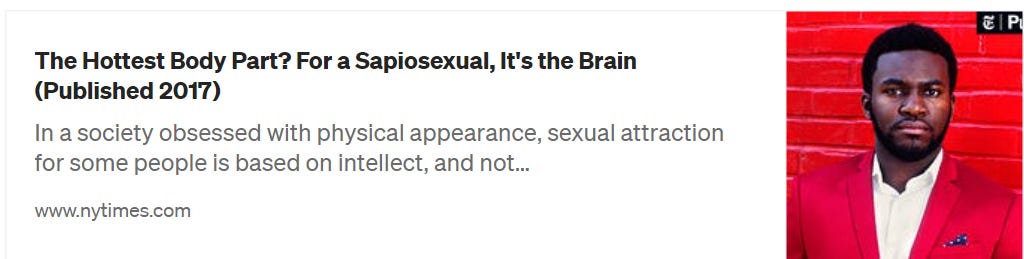 I love this quote: “In a world fixated on physical appearances and superficial attractions, sapiosexuality serves as a poignant reminder of the multifaceted nature of human desire.”